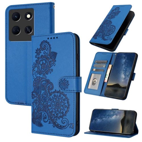 Funda de Cuero para Infinix Note 30 5G con Tapa en Relieve Datura Flower (Azul)