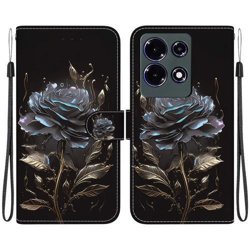 Funda para Infinix Note 30 de Cuero con Dibujo Coloreado y Textura de Cristal (Rosa Negra)