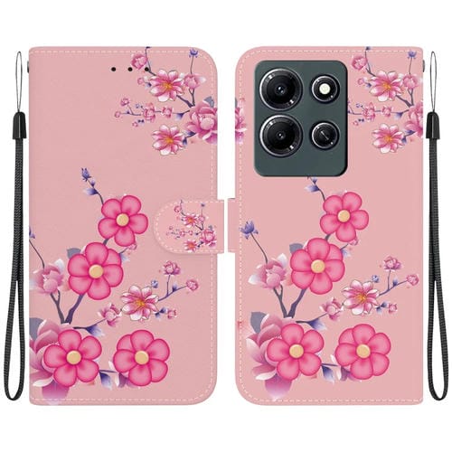 Funda de Cuero para Infinix Note 30I con Dibujo Coloreado y Textura de Cristal (Flores de Cerezo)