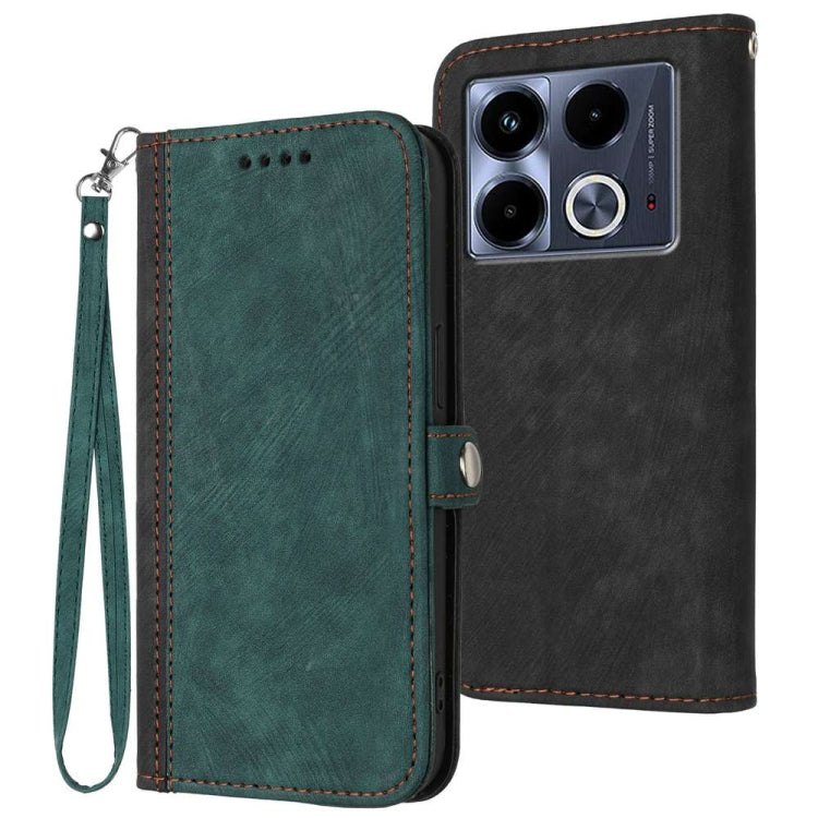 Funda de Cuero para Infinix Note 40 4G con Correa de Mano, Doble Pliegue y Hebilla Lateral (Verde Oscuro)