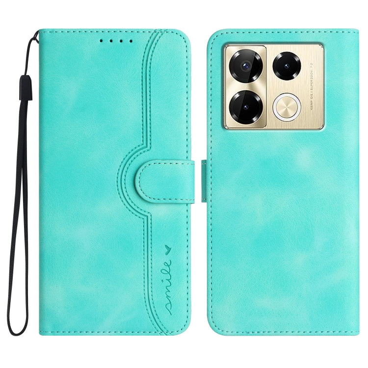 Funda de Cuero para Infinix Note 40 Pro 4G y 5G con Sensación de Piel y Patrón de Corazón (Azul Claro)