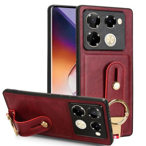 Funda Trasera de Cuero para Infinix Note 40 Pro + 5G X6851B con Pulsera (Rojo)