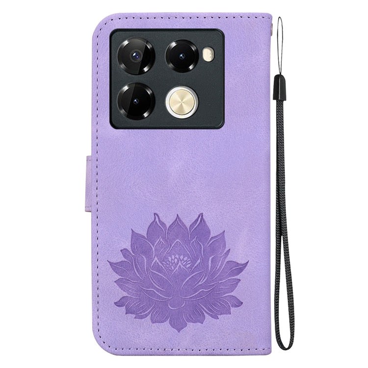 Funda de Cuero con Relieve de Loto para Infinix Note 40 Pro (Púrpura)