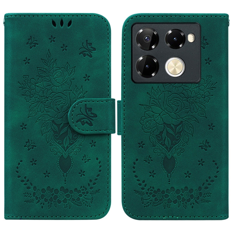 Funda para Infinix Note 40 Pro de Cuero con Relieve Mariposa y Rosa (Verde)