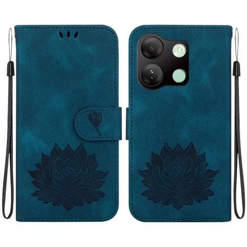 Funda de Cuero para Infinix Smart 7 HD con Relieve de Loto (Azul Oscuro)