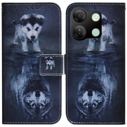 Funda de Cuero con Tapa para Infinix Smart 7 HD con Dibujo Coloreado (Lobo y Perro)