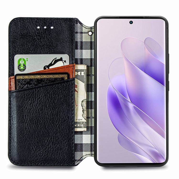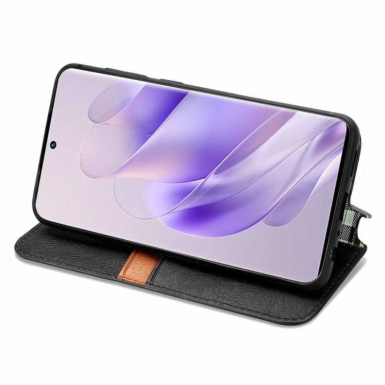 Funda de Cuero Magnético Prensado para Infinix Zero 30 4G (Negro) Cubic Grid