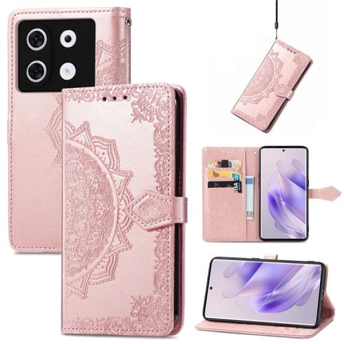 Funda para Infinix Zero 30 4G de Cuero con Relieve de Flor Mandala (Oro Rosa)