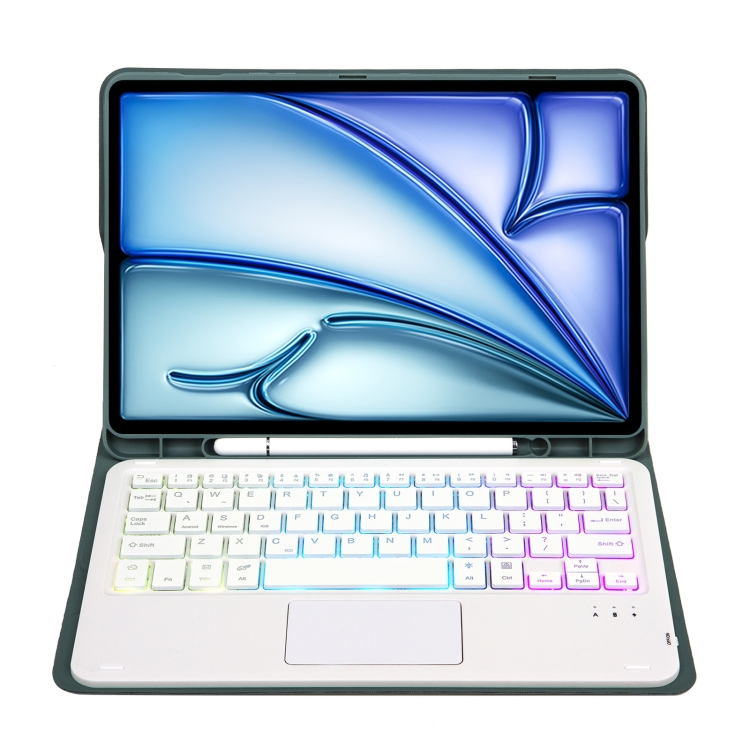 Funda de Cuero para iPad Air 11 2024 / Air 5 10.9 A098B-As con Teclado Táctil Bluetooth Retroiluminado Ultrafino Desmontable y Ranura para Bolígrafo (Verde Oscuro)
