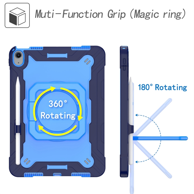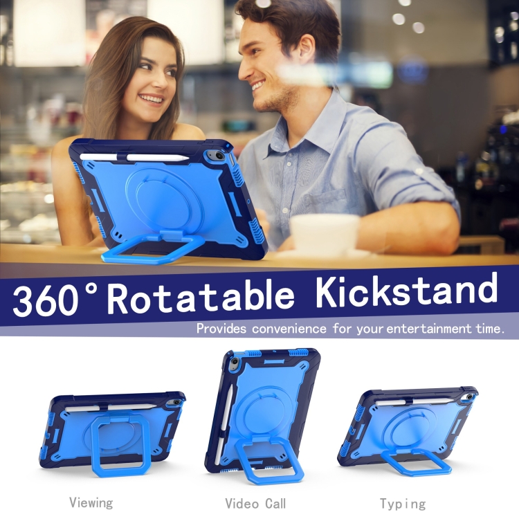 Funda para Tableta Apple iPad Air 11 (2024) Híbrida de Silicona con Soporte Empuñadura y Correa (Azul Marino y Azul)