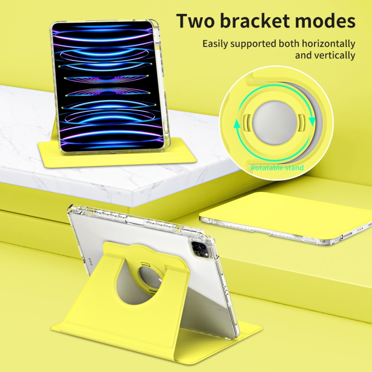Funda para Tableta iPad Pro 11 2022 Air 10.9 2022 Cuero Acrílico Transparente Desmontable Rotación 360 (Amarillo)
