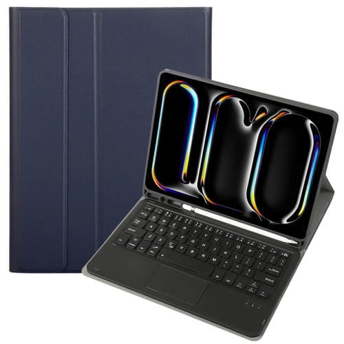 Funda teclado para iPad Pro 11 2024 A13B-A piel de cordero Bluetooth con ranura para bolígrafo (Azul Oscuro)