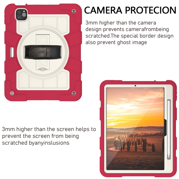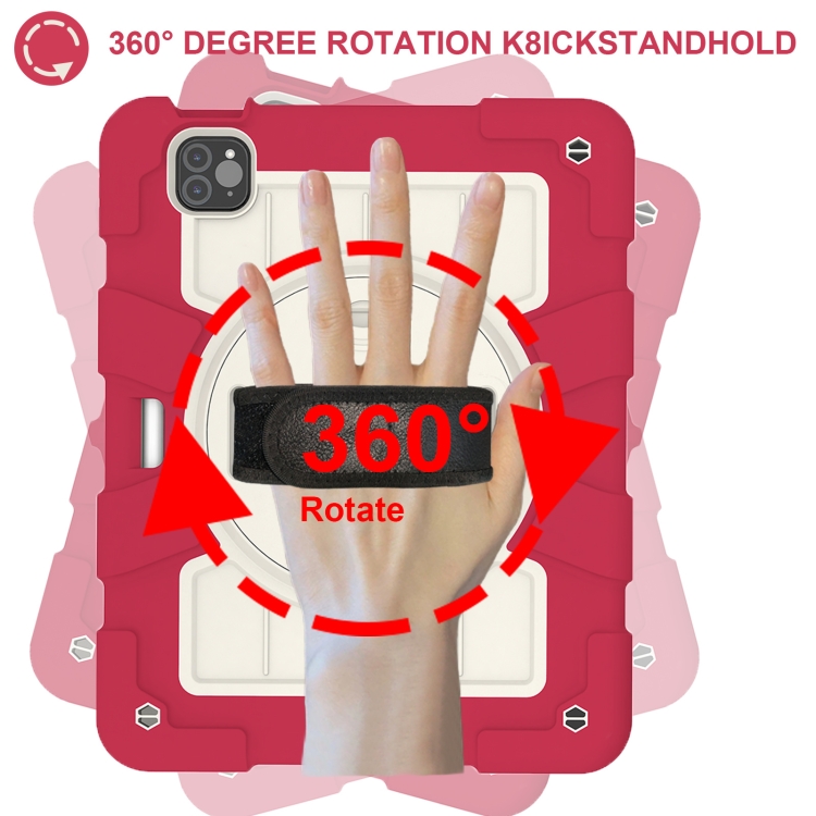 Funda híbrida de silicona Feifan para iPad Pro 11 (2024) a prueba de golpes con correa para el hombro (Magenta)