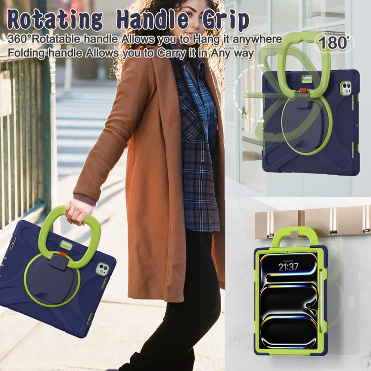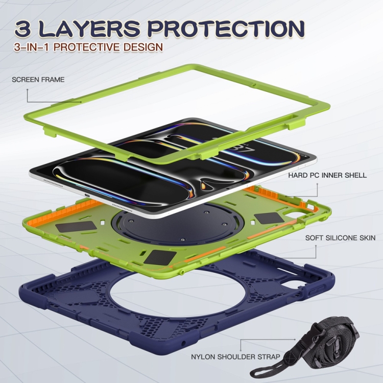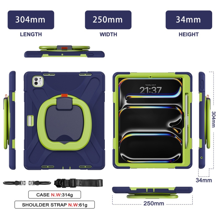 Funda híbrida de silicona para iPad Pro 11 (2024) con soporte y correa para el hombro (Azul Marino y Lima)