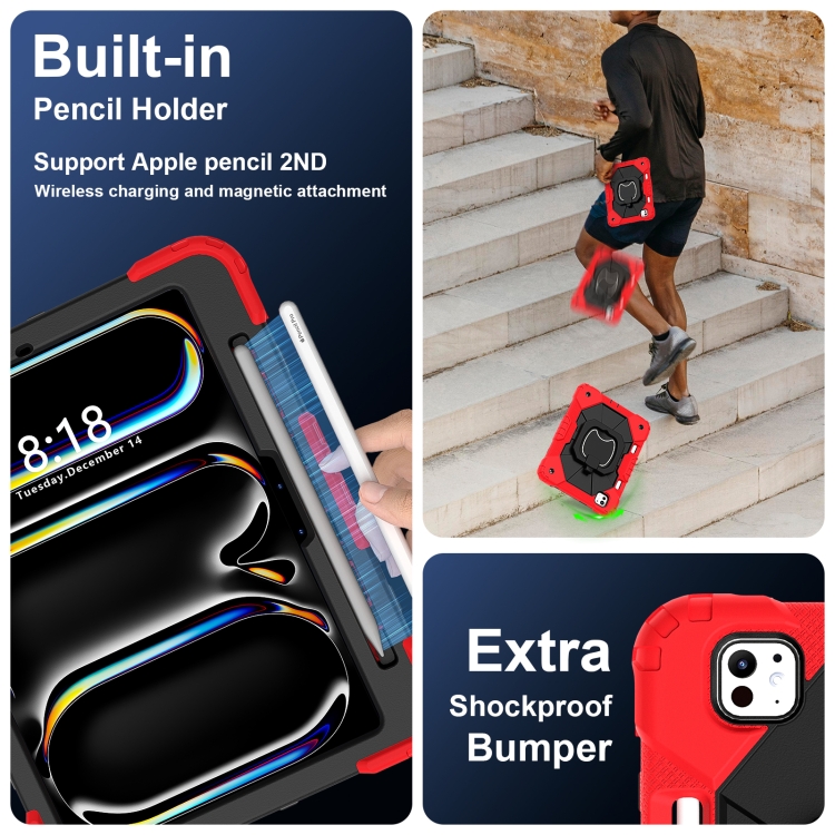 Funda híbrida Silicona Robot para iPad Pro 11 (2024) (Rojo y Negro)