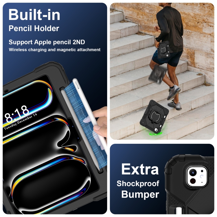 Funda híbrida de silicona con diseño de robot para iPad Pro 11 (2024) (Negro)