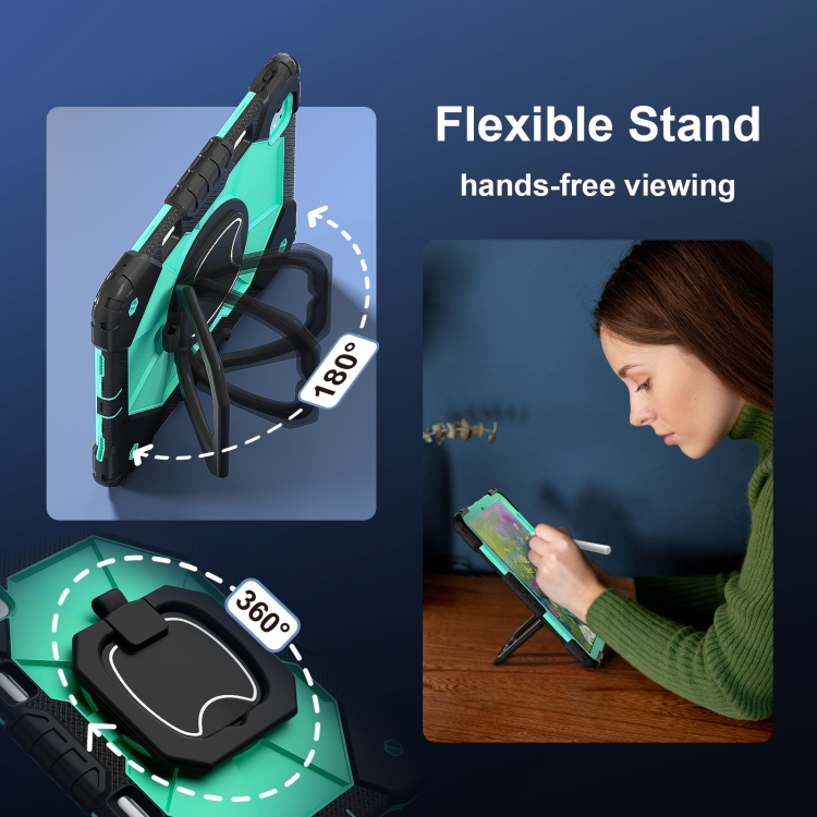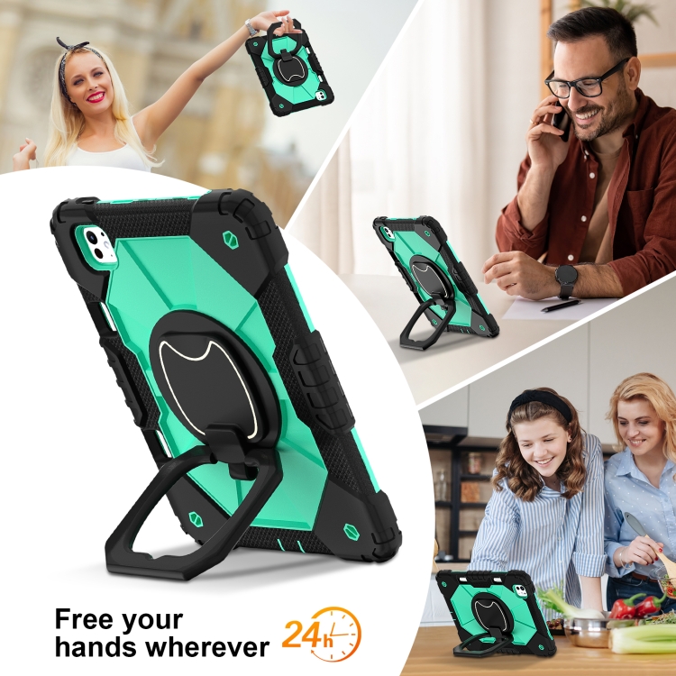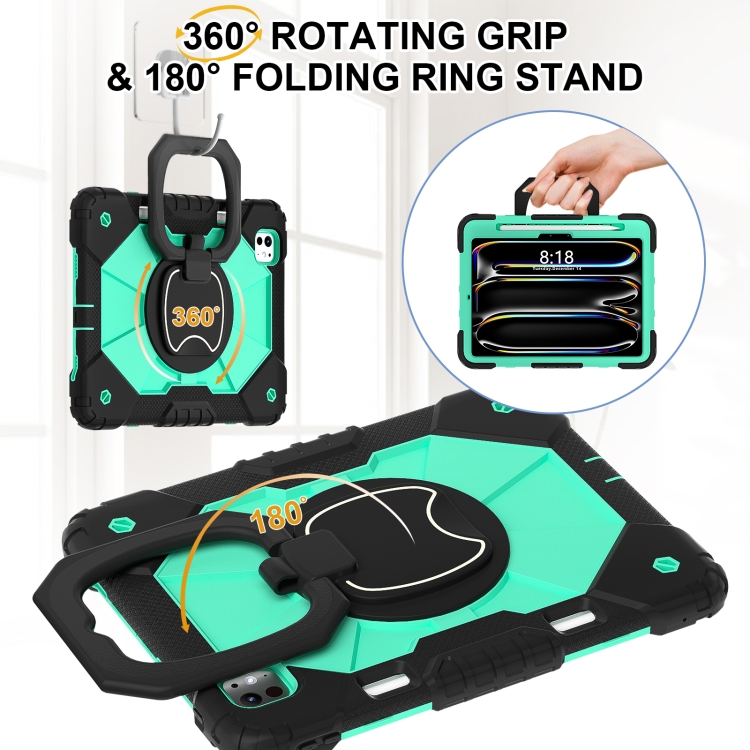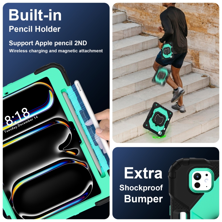 Funda híbrida de silicona con diseño de robot para iPad Pro 11 (2024) (Negro y Verde Menta)