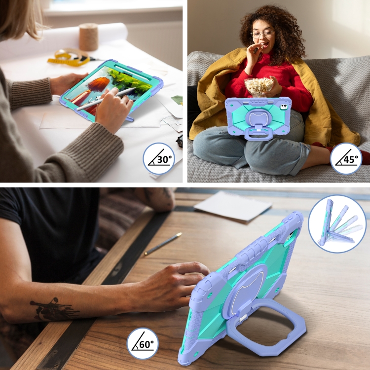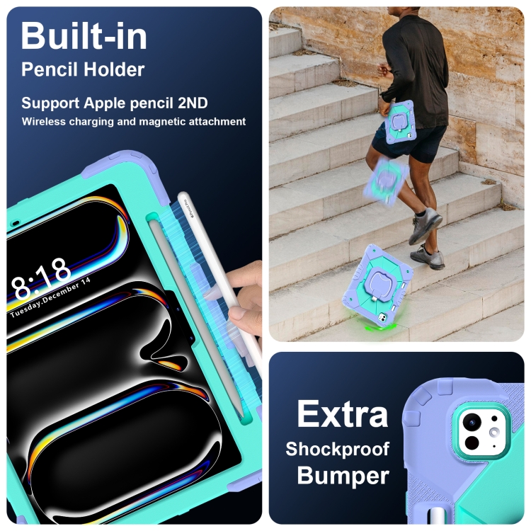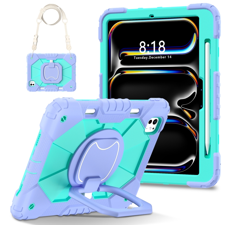 Funda híbrida de silicona Robot para iPad Pro 11 (2024) (Morado y Verde Menta)