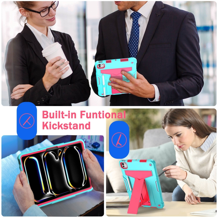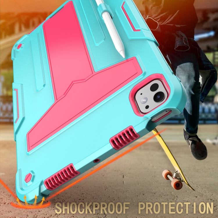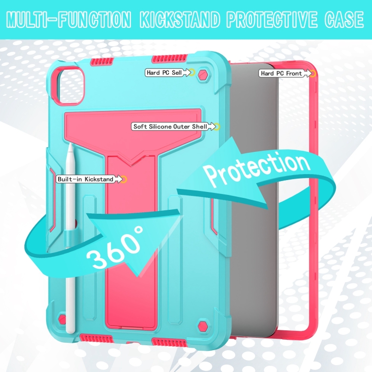 Funda híbrida silicona iPad Pro 11 (2024) con soporte en T y robot (Rosa Menta)