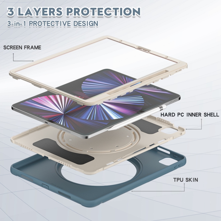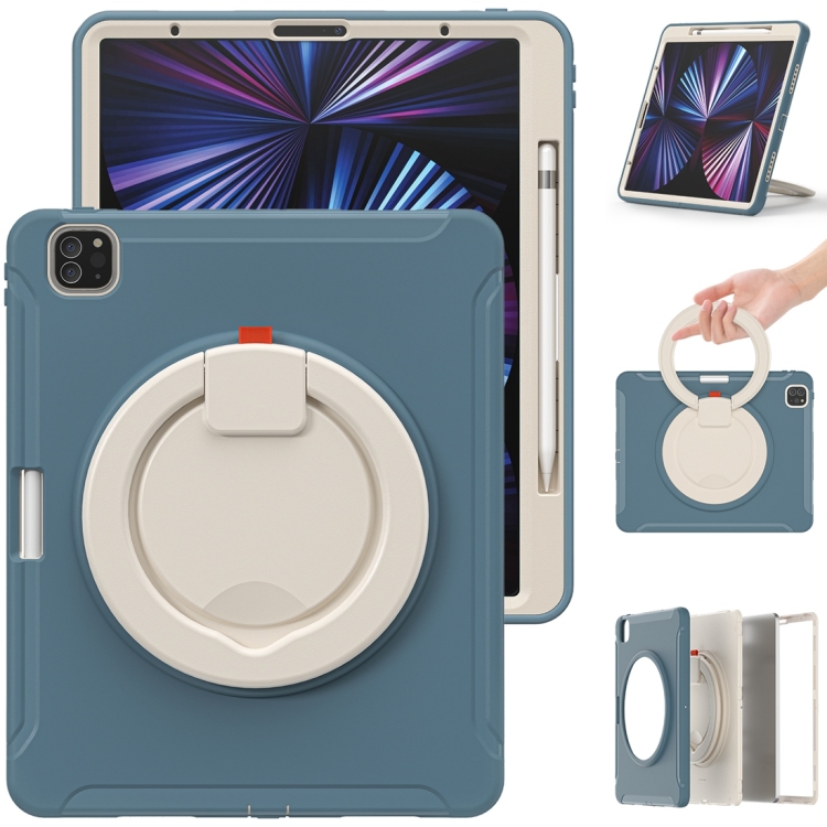 Funda Protectora para iPad Pro 12.9 2022/2021 TPU + PC Rotación 360° Soporte y Ranura Bolígrafo (Azul Aciano)