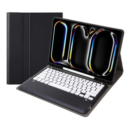 Funda de Cuero para iPad Pro 13 2024 A13B con Teclado Táctil Bluetooth Ultrafino Desmontable y Ranura para Bolígrafo (Negro y Blanco)