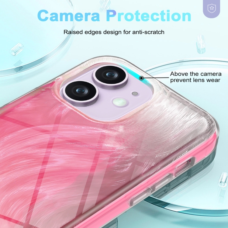 Funda para Teléfono iPhone 11 2 en 1 Imd Gradient Feather PC + TPU (Rojo Rosa)