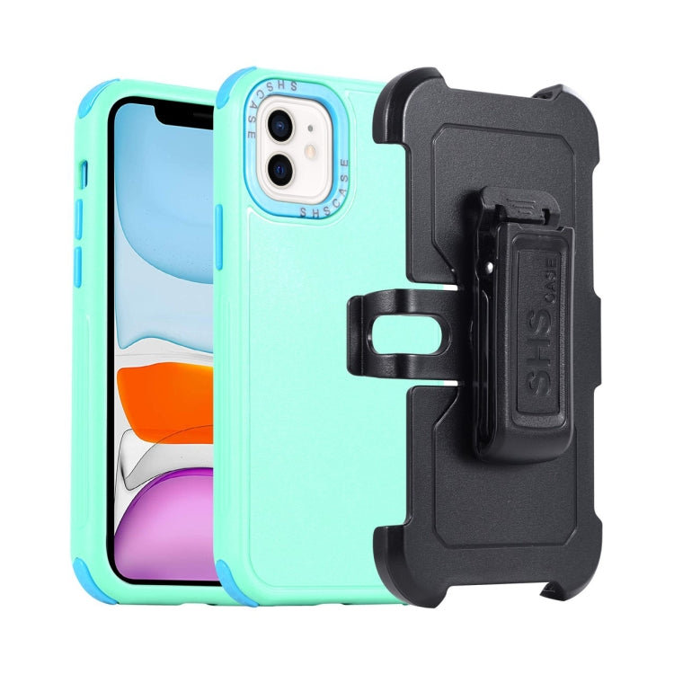 Funda 3 en 1 para iPhone 11 PC + TPU con funda deslizante (Verde Hierba + Azul Cielo)