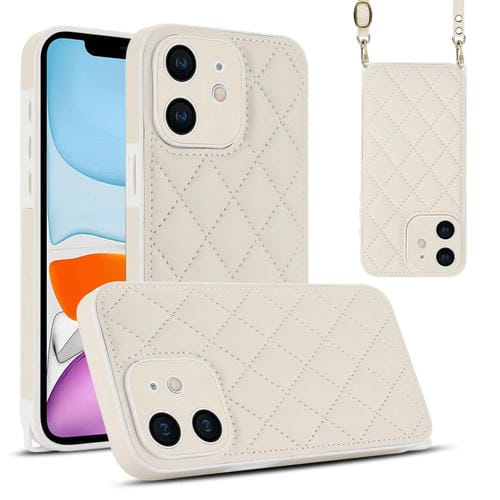Estuche para Teléfono iPhone 11 con Textura Rómbica y Cordón Doble (Blanco)