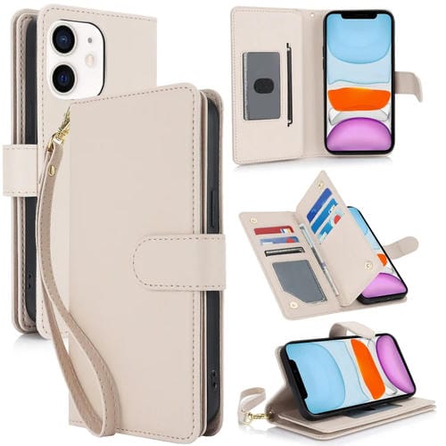 Funda de cuero para teléfono iPhone 11 con billetera MultiTarjeta RFID (Albaricoque)