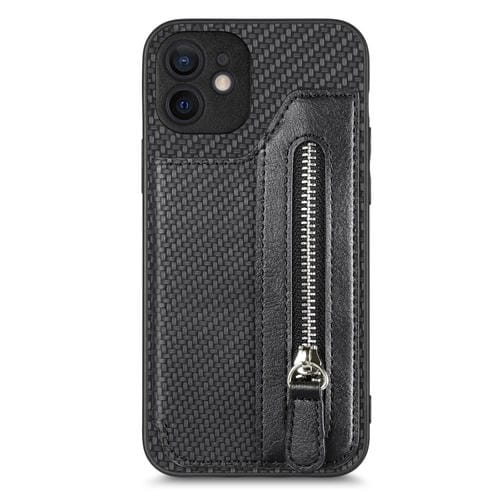 Funda de Teléfono para iPhone 11 con Cremallera y Tapa Horizontal de Fibra de Carbono (Negro)