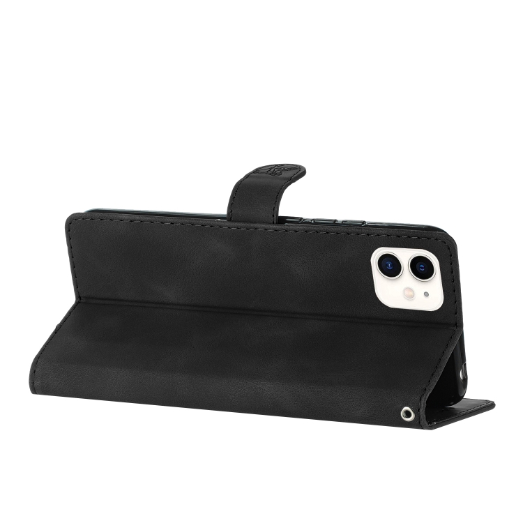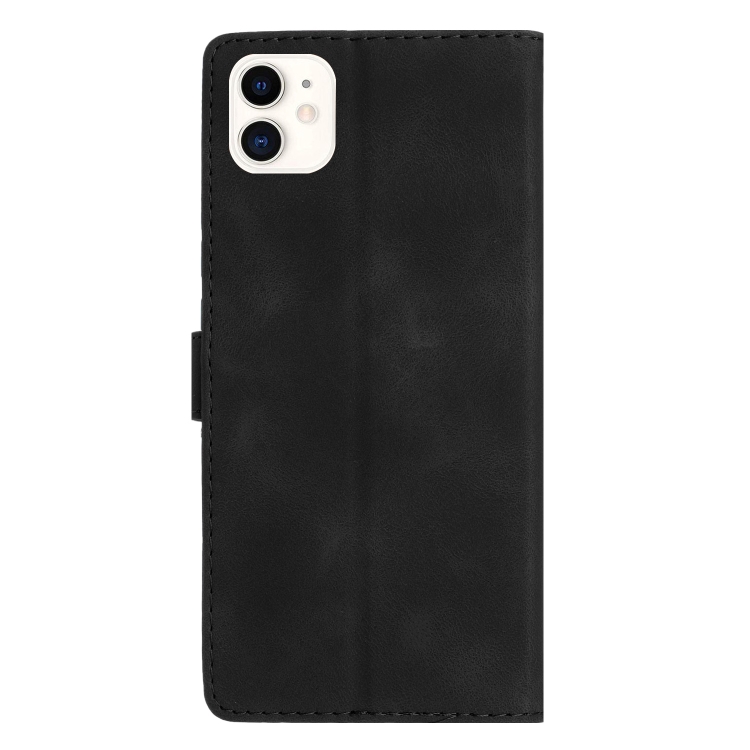 Funda de Teléfono iPhone 11 Cuero Estampado de Flores en Relieve (Negro)
