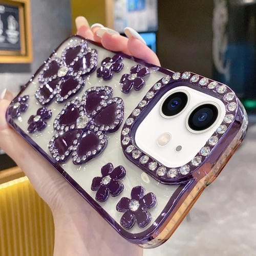 Funda para Teléfono TPU iPhone 11 con Diamantes y Flores Galvanizadas (Púrpura)