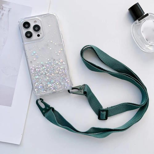 Funda para iPhone 11 Lanyard Glitter Epoxy Clear Phone Case (Verde Oscuro)