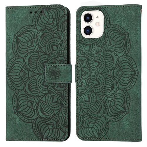 Funda de Cuero para iPhone 11 Mandala en Relieve con Tapa (Verde)