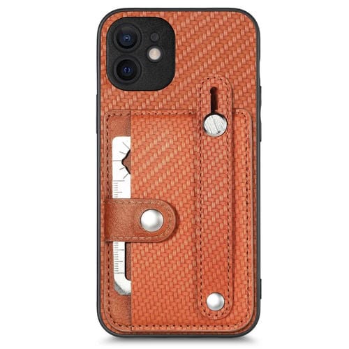 Funda para iPhone 11 Muñequera Kickstand Tarjeta Monedero Contraportada con Herramienta Cuchillo (Marrón)