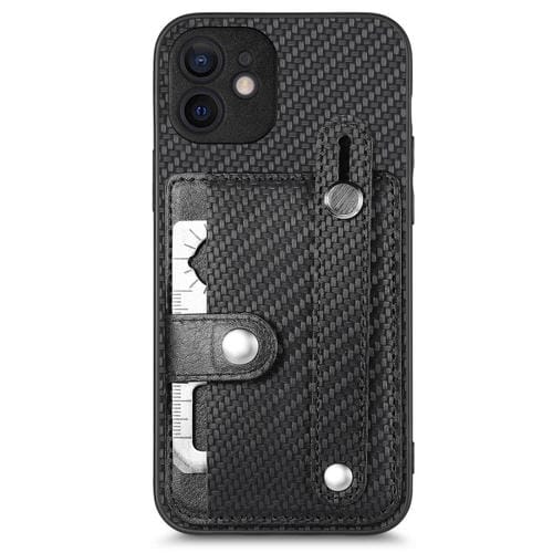 Caja del teléfono para iPhone 11 Muñequera Kickstand Tarjeta Monedero con Herramienta Cuchillo (Negro)