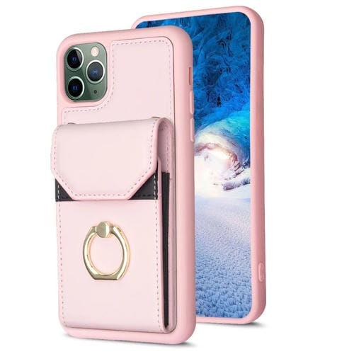 Funda para Teléfono Bf29 para iPhone 11 Pro con Soporte para Anillo y Bolsa para Tarjeta (Rosa)