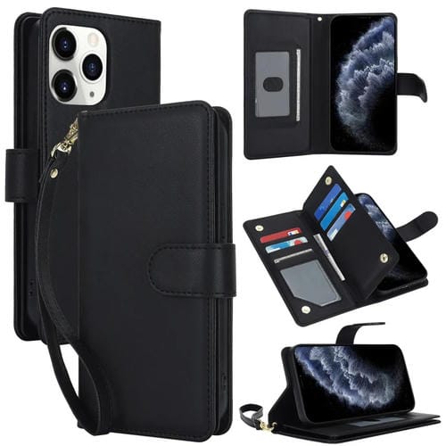 Funda para teléfono iPhone 11 Pro Cuero Rfid con Billetera MultiTarjeta (Negro)