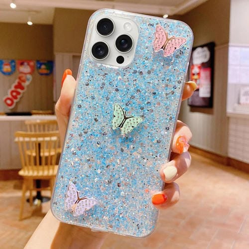 Funda para Teléfono TPU Epoxi iPhone 11 Pro con Lentejuelas Estrelladas y Diamantes de Imitación (Azul)