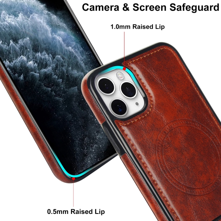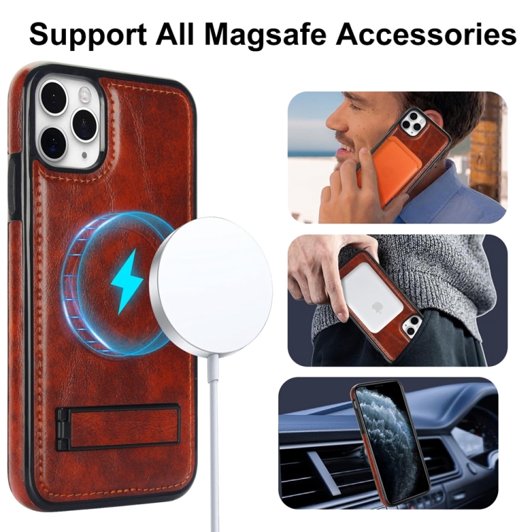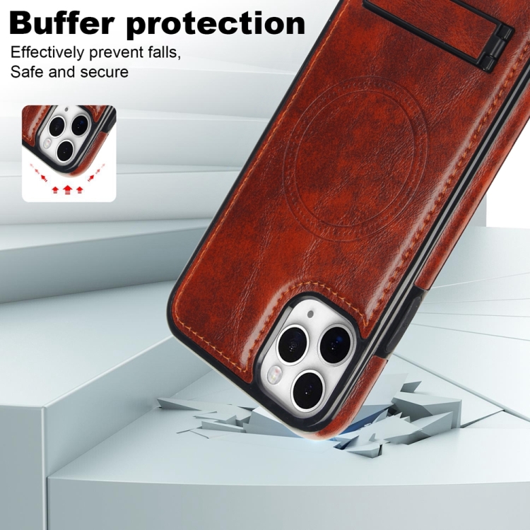 Funda para Teléfono iPhone 11 Pro Magsafe con Soporte Invisible de Cuero Retro (Marrón)