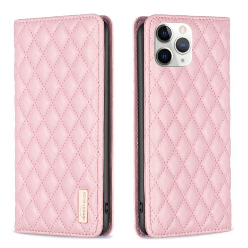 Funda de Teléfono para iPhone 11 Pro Max Diamond Lattice con Tapa de Cuero Magnético (Rosa)