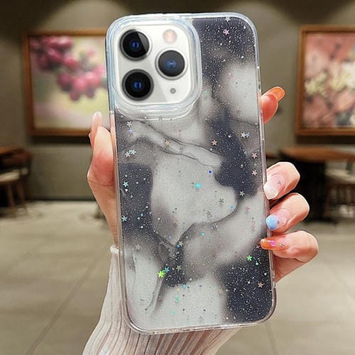 Funda para Teléfono TPU iPhone 11 Pro Max con Purpurina Manchada de Tinta (Negro)