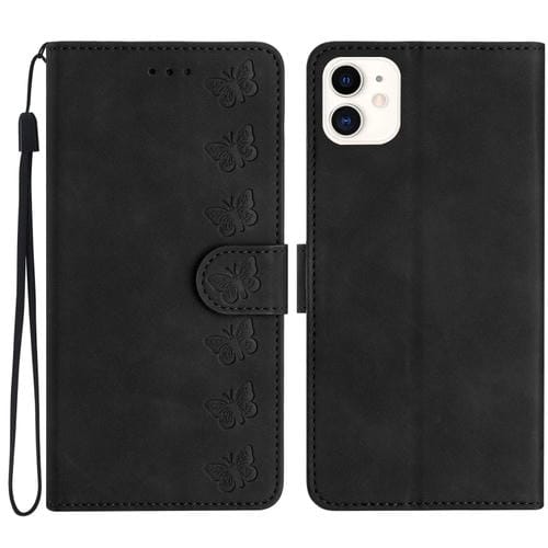 Funda para iPhone 11 Seven Butterflies Caja de Teléfono de Cuero en Relieve (Negro)
