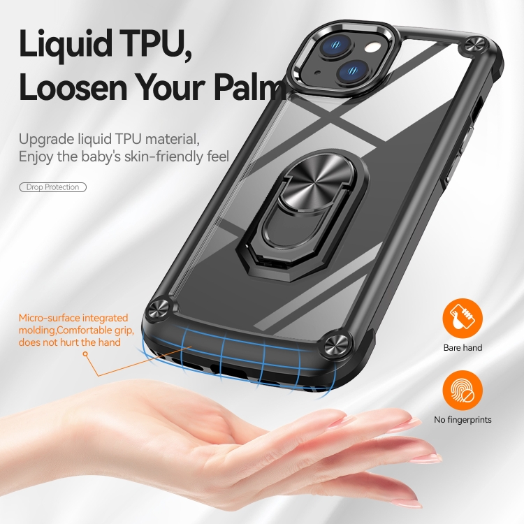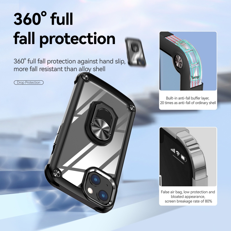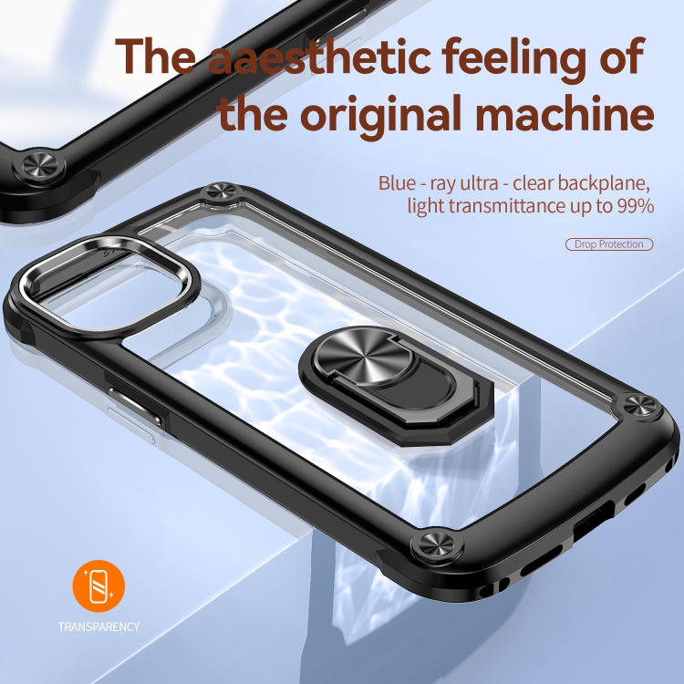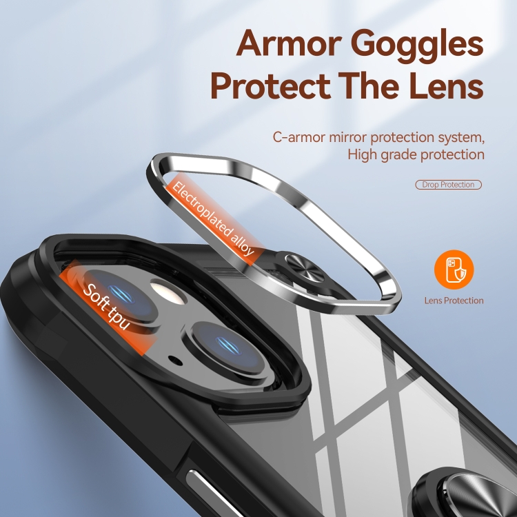 Estuche para Teléfono iPhone 11 TPU + PC con Protección de Lente y Soporte para Anillo (Negro)