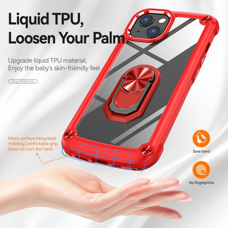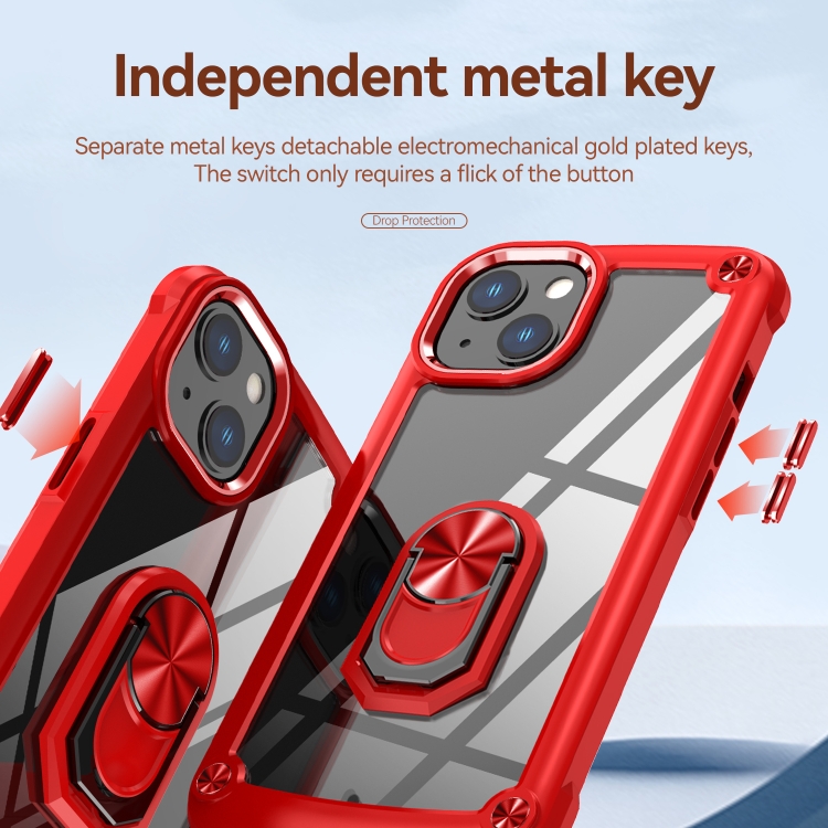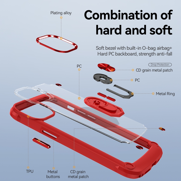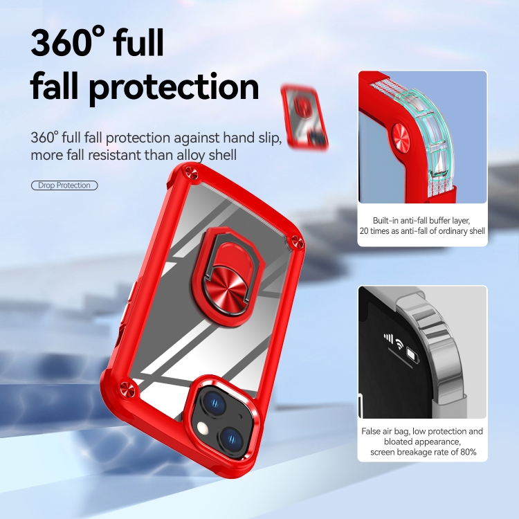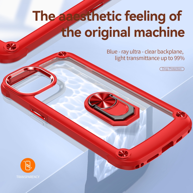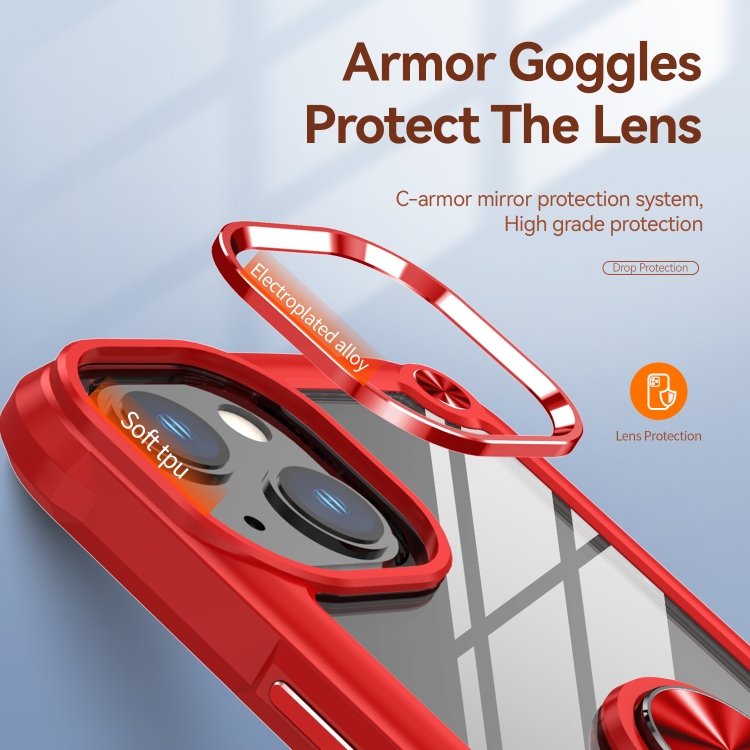 Estuche para Teléfono iPhone 11 TPU + PC con Protección de Lente y Soporte para Anillo (Rojo)