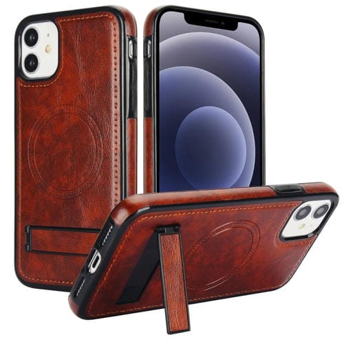 Funda para Teléfono iPhone 12/12 Pro Magsafe con Soporte Invisible de Cuero Retro (Marrón)