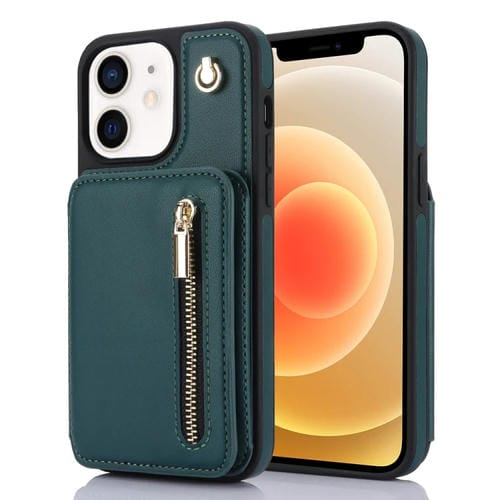 Estuche para Teléfono Ym006 para iPhone 12/12 Pro con Bolsa para Tarjetas Cremallera y Cordón Doble (Verde)