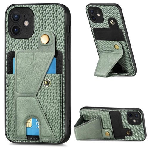 Funda para Teléfono iPhone 12 Carbon Fiber Wallet Flip Card con Soporte en Forma de K (Verde)
