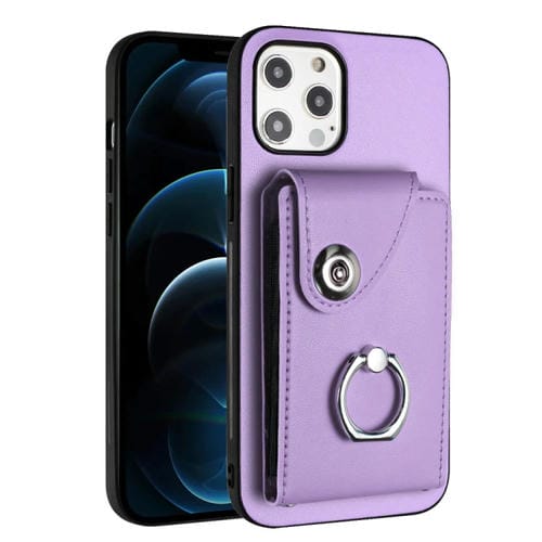 Funda para Teléfono iPhone 12 con Soporte para Anillo y Bolsa para Tarjeta de Órgano (Púrpura)