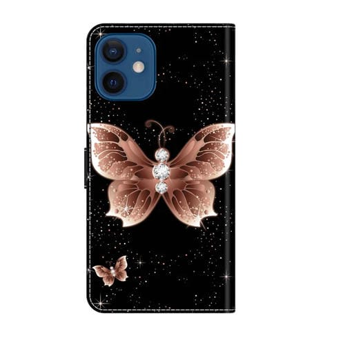 Funda Protectora de Cuero iPhone 12 Mini 13 Mini Crystal 3D a Prueba de Golpes (Mariposa de Diamante Rosa)